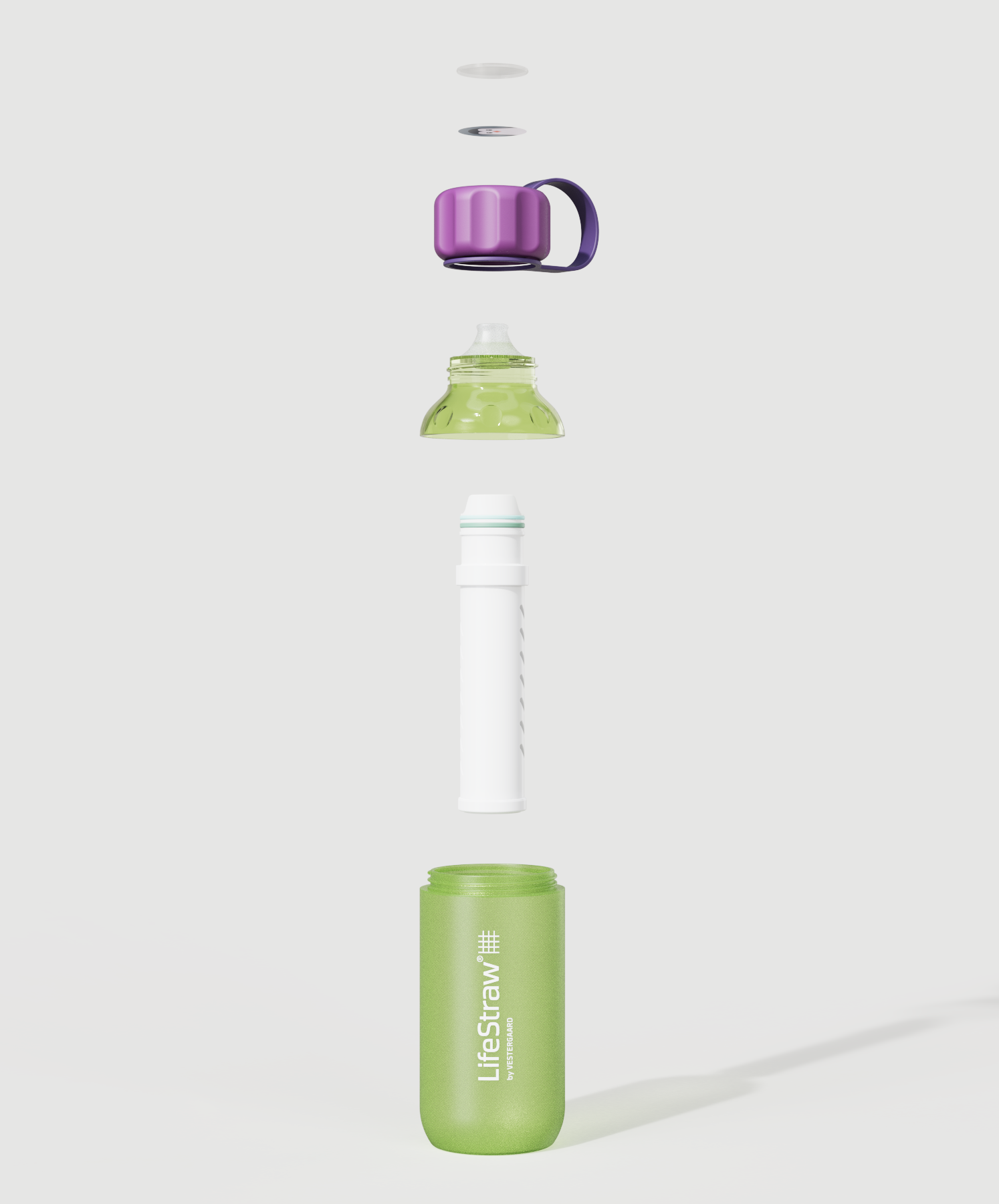 The kid-size bottle, available in various vibrant colors, is easy to assemble, sturdy and leakproof. It´s designed to access safe drinking water at school, while traveling or on outdoor adventures.